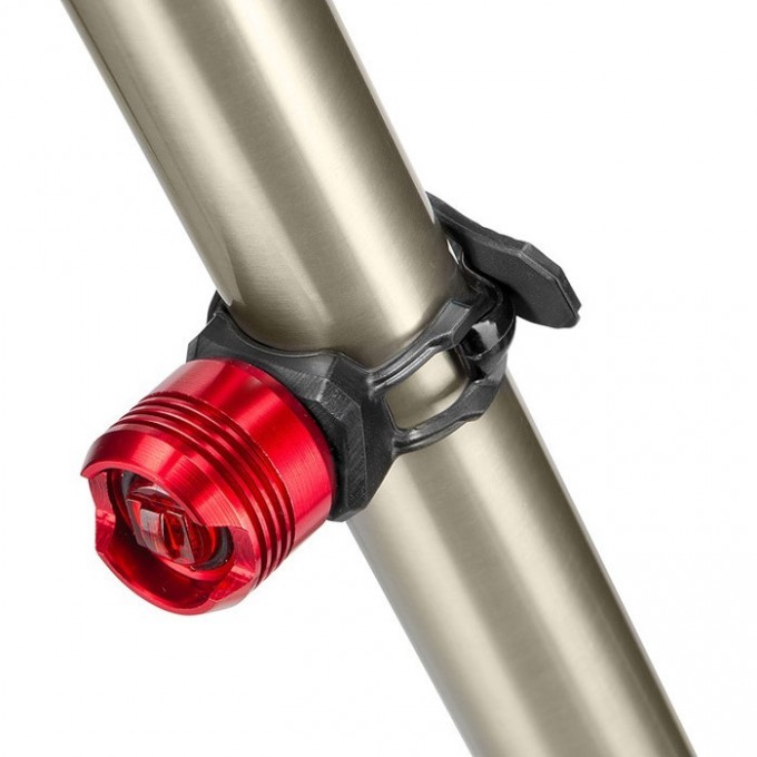 Фонарь JY-3006T габаритный задний, 1 суперяркий красный светодиод, алюминиевый корпус и мягкий ремешок, под батарейки 2хCR2032, красный