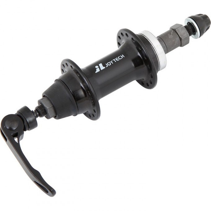 Втулка задняя 752DSE Joytech, MTB, на 32 спицы, с эксцентриковым зажимом, под трещотку на 6-7 скоростей, двойное резиновое уплотнение, O.L.D. 135 мм, диаметр фланцев по отверстиям для спиц 45 мм, расстояние между фланцами 57 мм, ось 10х145 мм, алюминиевый корпус, чёрная, 268 г